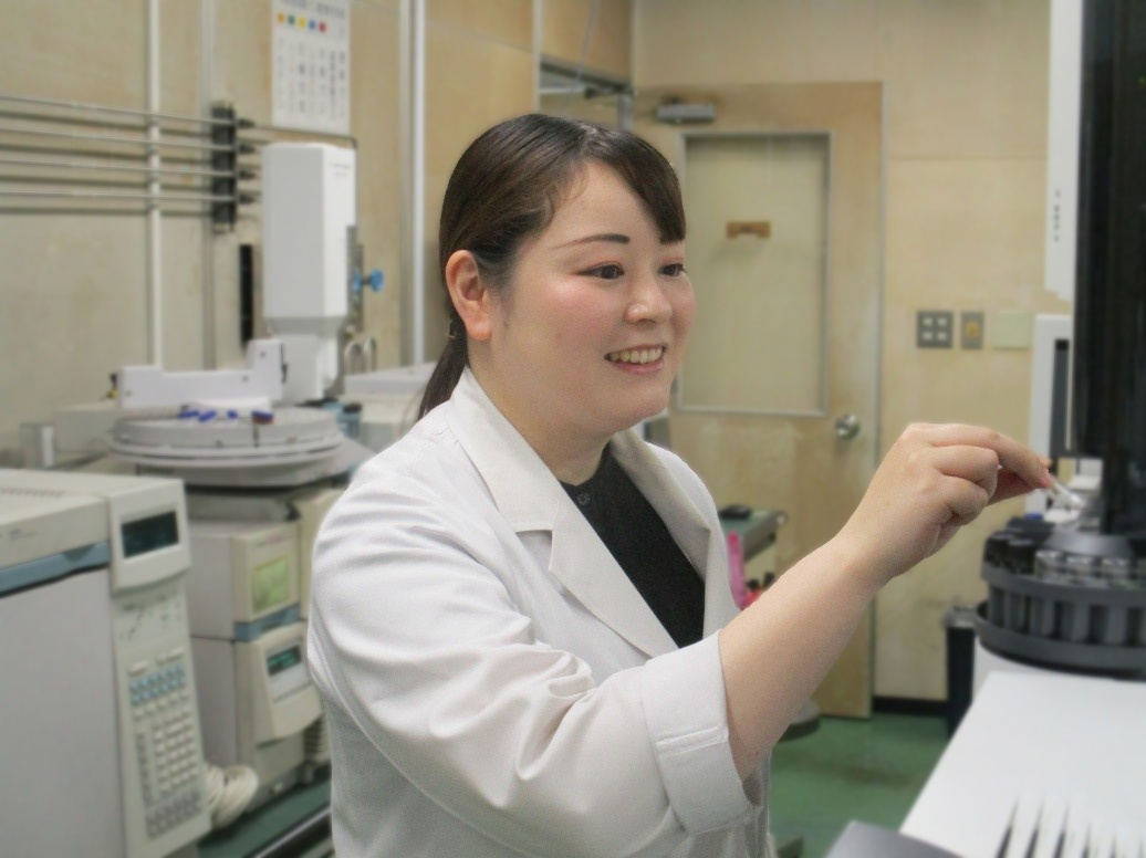 - 現在は食品中の残留農薬を分析する業務をしています。入職して7年目になりますが、この検査に関わるようになったのは3〜4年目くらいからです。最初の3年間は栄養成分表示に係る分析業務を担当していて、その後に異動しました。