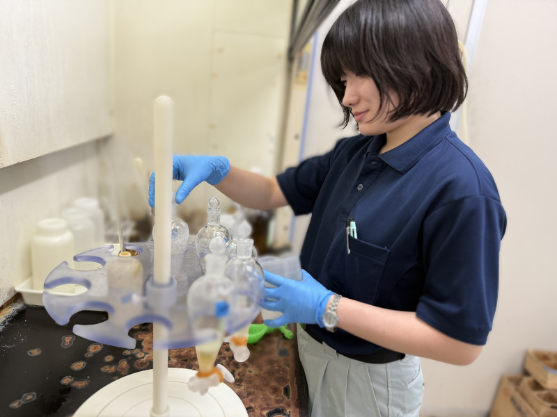 入職してからは、有害物質や金属、ビタミン、細菌など、さまざまな分析業務を経験してきました。幅広い検査に携わることで、知識もスキルも少しずつ積み重ねられていると感じています。